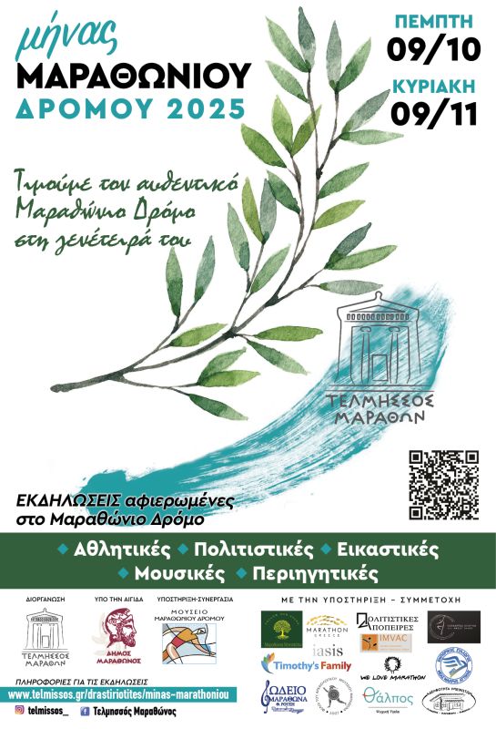 Για να τιμήσει την Ιστορία του τόπου μας, τους Ήρωές μας και την σημαντικότερη Μάχη της υφηλίου, τη Μάχη του Μαραθώνα, ο σύλλογος Μαραθωνοδρόμων του Ιστορικού Δήμου Μαραθώνος, ο ΤΕΛΜΗΣΣΟΣ ΜΑΡΑΘΩΝΟΣ, την Κυριακή 7 Σεπτεμβρίου 2025 και ώρα προσέλευσης 8:00 πμ στο Αρχαιολογικό Μουσείο Μαραθώνα περιοχή Βρανά, θα αναβιώσει την ιστορία διοργανώνοντας το ΔΡΟΜΟ ΜΑΧΗΣ ΜΑΡΑΘΩΝΑ, μια διαδρομή 35 χλμ στα ιστορικά και αρχαιολογικά σημεία της περιοχής μας και ουσιαστικά στο ευρύτερο πεδίο της Μάχης του Μαραθώνα!